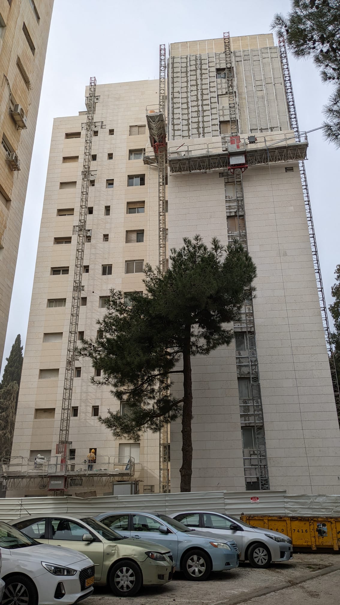 בתמונות- הליך החלפה כוללת של חיפויי חוץ ע"פ תכנון של משרדנו, בירושלים רח' אלרואי 5.