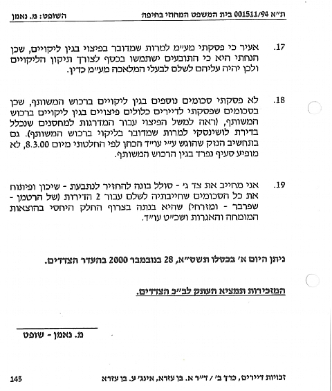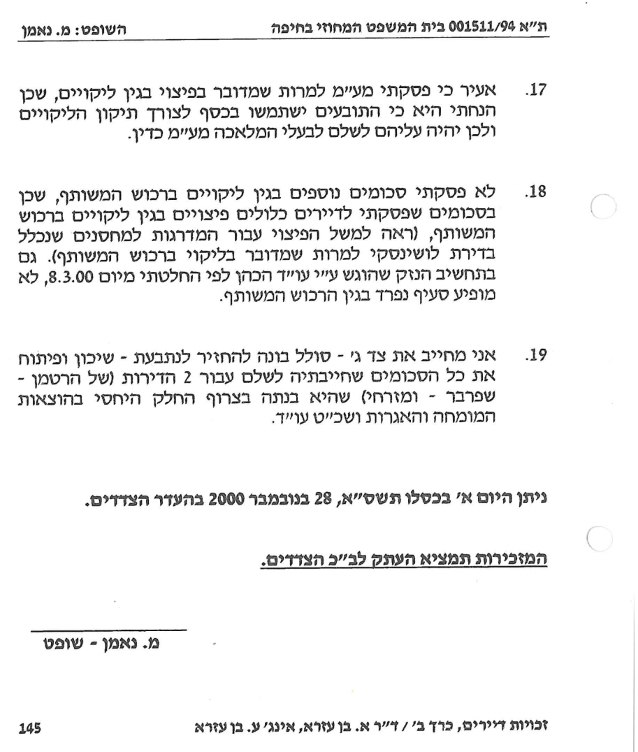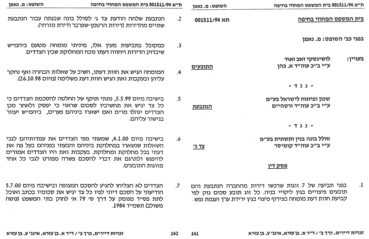 בתיק זה מונה טעם ביהמ"ש המומחה אלפרד אירני- מהנדס ושמאי מקרקעין, ולהלן ציטוט רלוונטי מפסק הדין:
